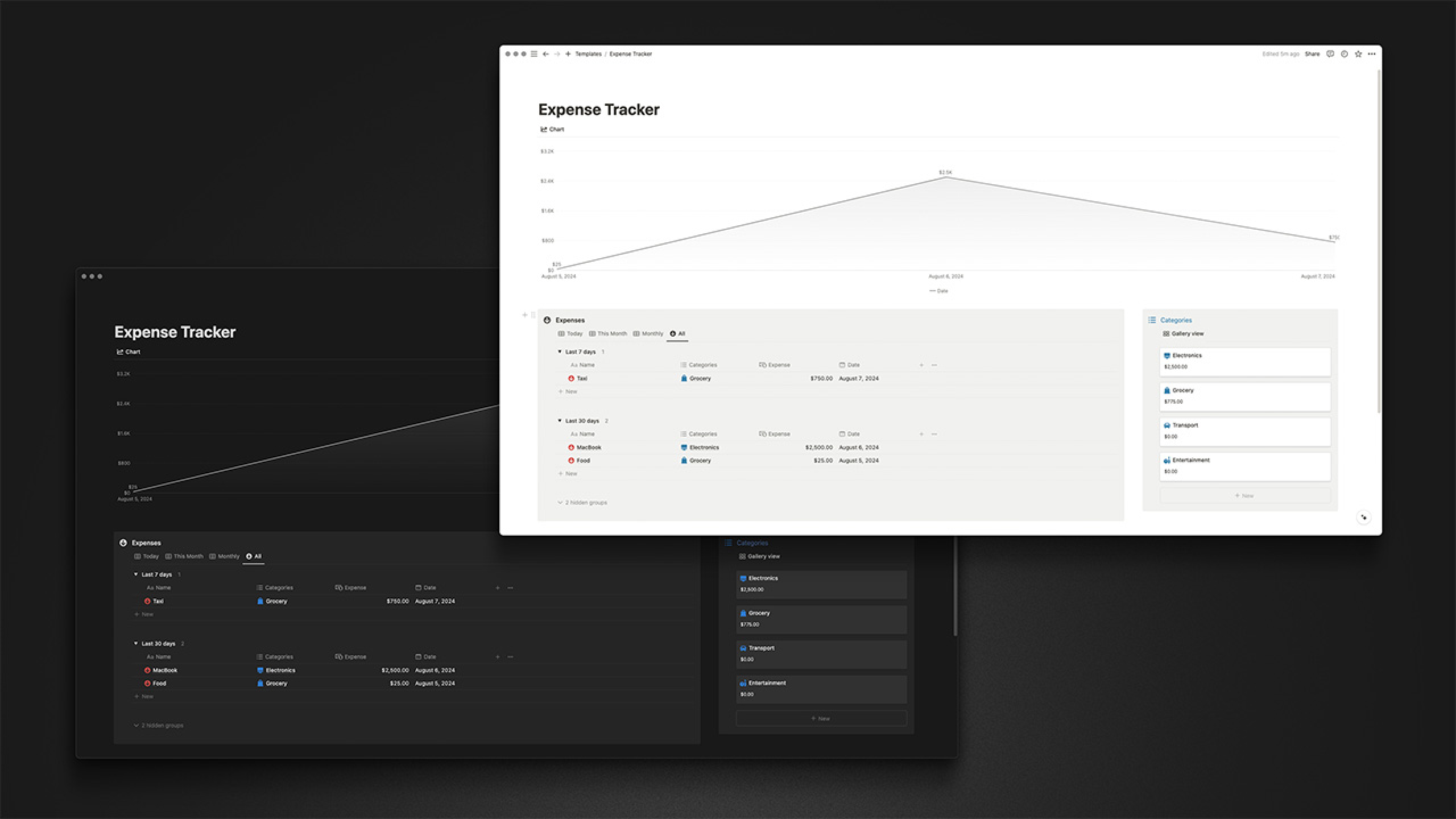If you want a Notion expense tracker that shows both short-term and long-term trends, this one fits. This makes sense for me when I care about yearly patterns as much as monthly spending.