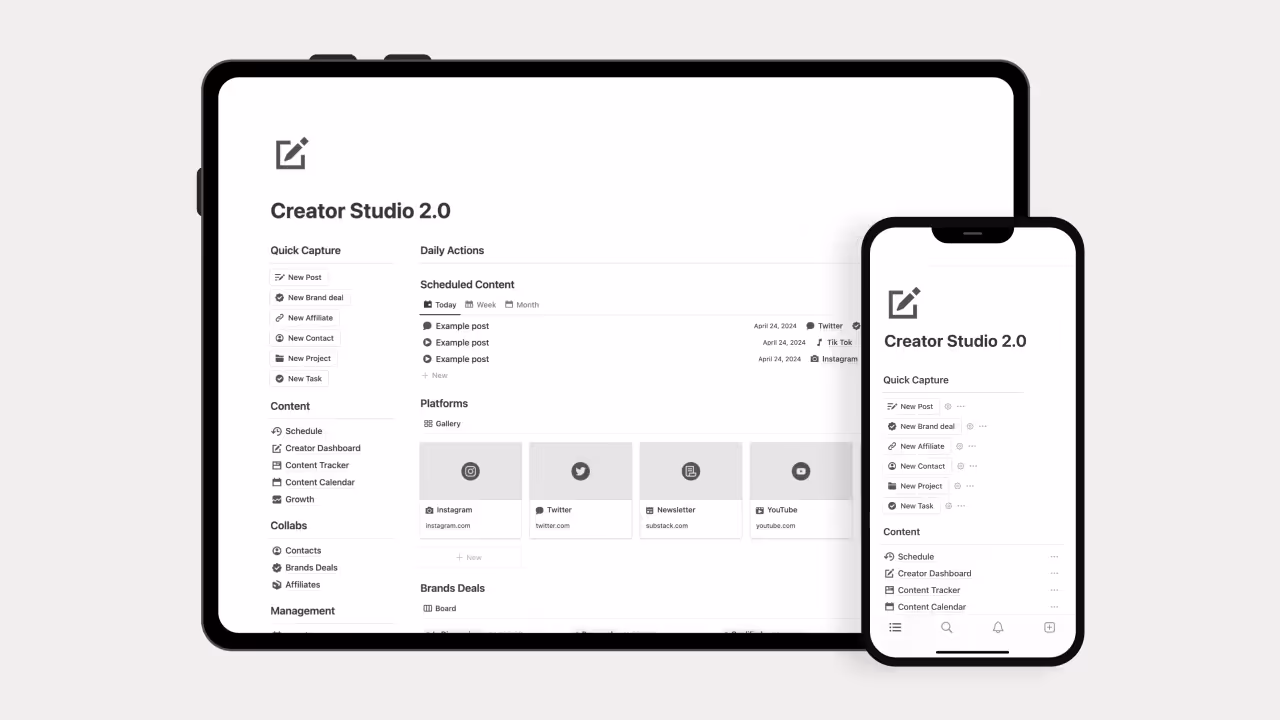 - Affiliates & Sponsorships Manager: Track brand deals, deadlines and deliverables.