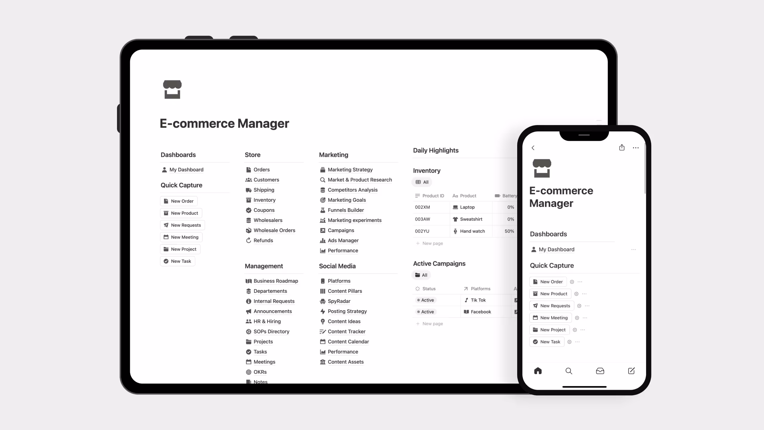 1. Notion E-commerce Manager: