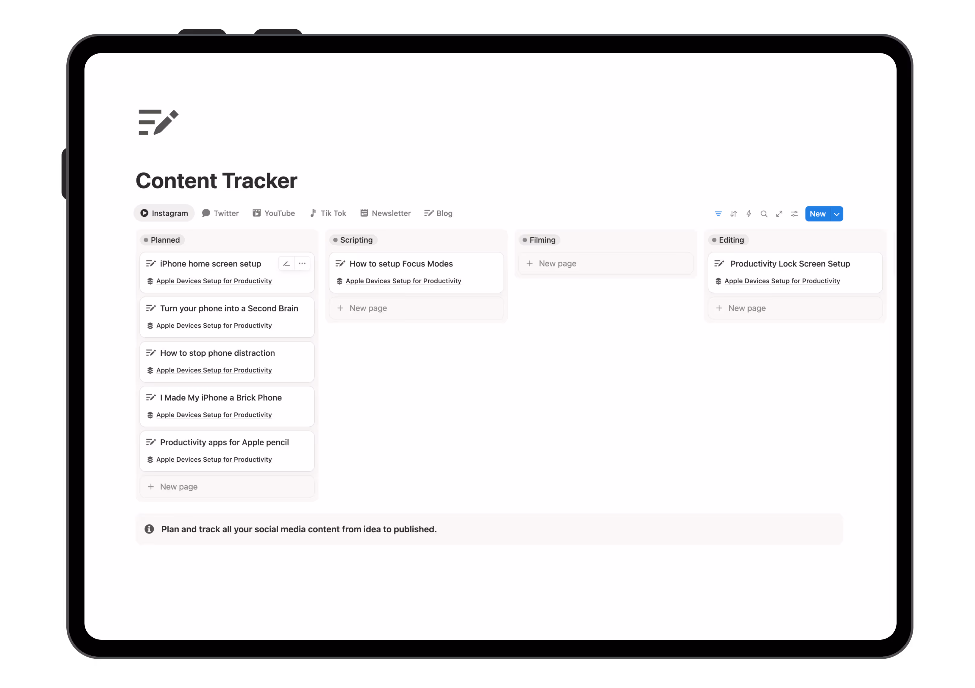 Creator Studio shows you exactly where each video is in your process. Know what's just an idea, what's being written, what's filmed, and what's already live. No more losing track of content or scrambling to remember what you need to finish.